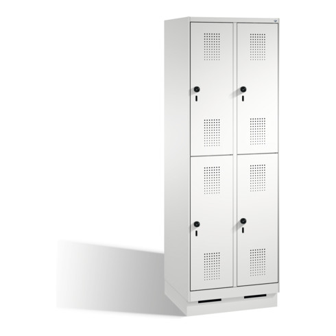 Armoire à deux niveaux C+P Evolo sur socle 4 compartiments avant gris clair corps gris clair gris clair