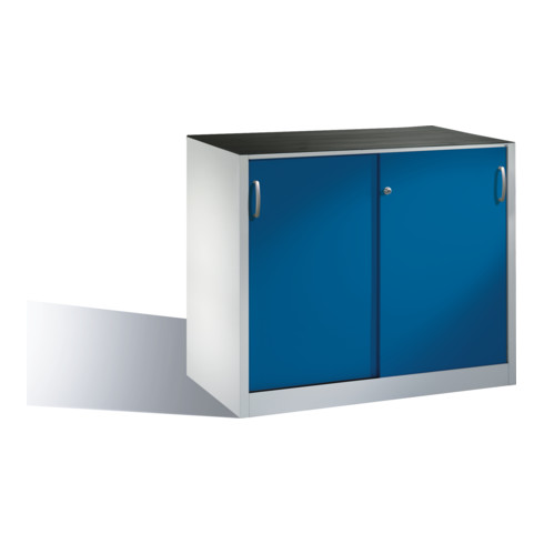 TTCArmoire à outils C+P avec portes coulissantes, intérieur 1 tablette, H1000xL1200xP600mm Avant Corps bleu gentiane Corps gris clair