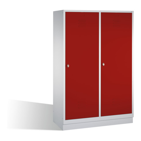Armoire double C+P Classic sur socle, pour 2 personnes, H1800xL1190xP500mm Avant Rouge rubis corps Gris clair
