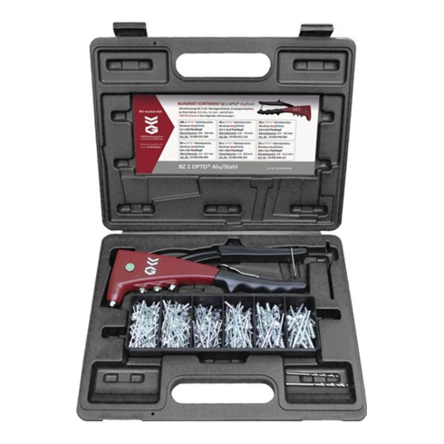 Assortiment de rivets aveugles OPTO tête plate en aluminium/acier avec pince à main BZ 2 VVG