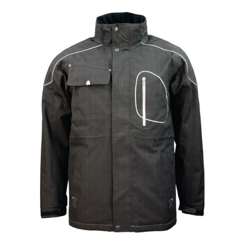 colonne d'eau 8000 mm, thermoactif 5000 g/m²/24h · doublure : 100 % polyester polaire · nervure réfléchissante dans la zones des épaules · 2 poignées traversantes latérales · 1 poche dans la poitrine avec rabats · 1 poche au niveau de la poitrine avec fermeture éclair étanche à l'eau · capuche séparable par fermeture éclair · poignets réglable avec fermeture velcro
