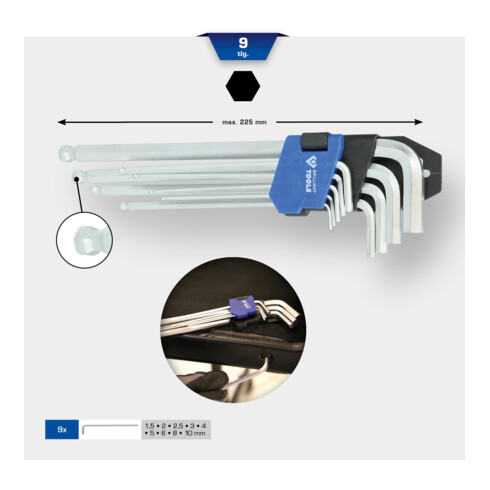 - Jeu de clés à angle 9 pièces pour vis à six pans creux