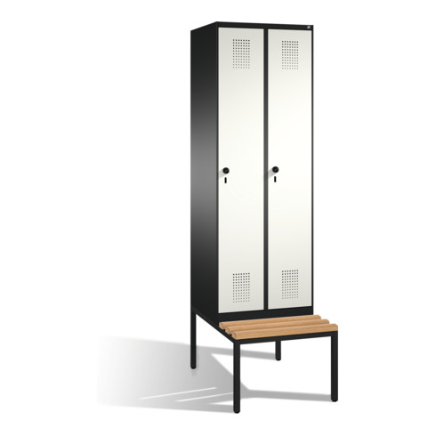 C+P armoire Evolo avec banquette 2 compartiments Avant Blanc pur corps Noir gris noir