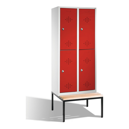 C+P Classic armoire à deux niveaux avec banquette 4 compartiments Façade Rouge rubis Rubis Corps gris clair
