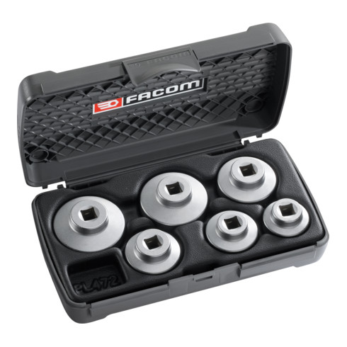 Clé pour vis de filtre à huile en matériau composite à douille carrée extra-plate, sortie femelle 3/8", 6 douilles hexagonales, 6 pièces.