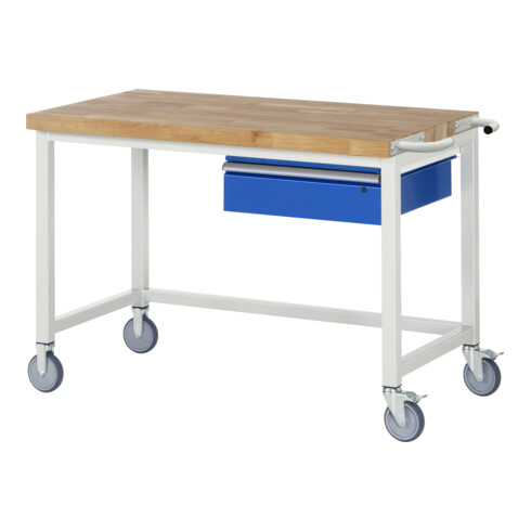 Etabli mobile Rau avec traverse et tiroir 880 mm 700 mm plaque de hêtre massif