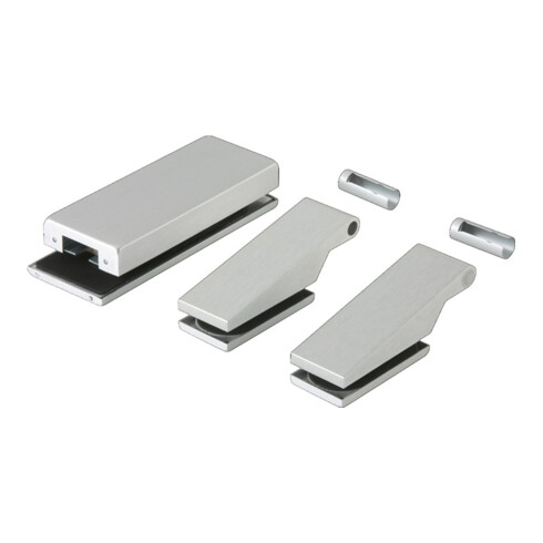 rectangulaire - poids de vantail max. 45 kg et largeur de vantail max. 1000 mm - matériau aluminium - pour ESG 8 mm d'épaisseur de verre et 24 mm de feuillure ou 10 mm d'épaisseur de verre et 26 mm de profondeur de feuillure - dimensions charnières (LxH) 131x43 mm - avec manchon - 2 parties -