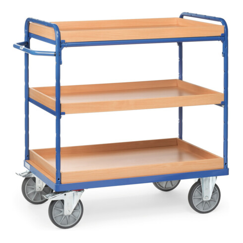 fetra Chariot à plateaux avec bacs - 3 plateaux pneus TPE
