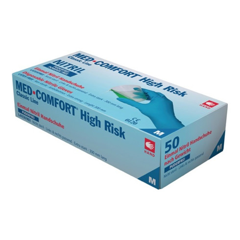 Gants jetables en nitrile High Risk Comfort sans poudre 50 pcs. Boîte bleue