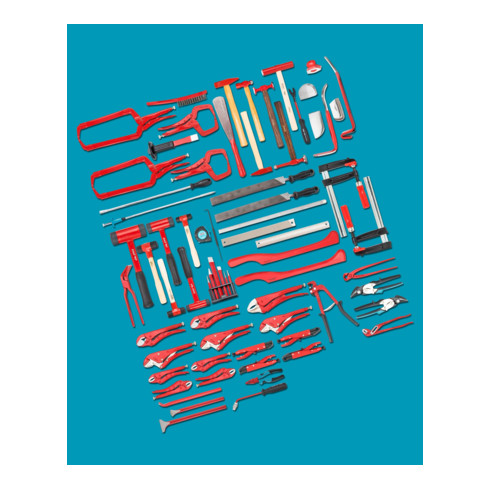 - Le marquage rouge des outils signale à l'utilisateur leur utilisation spéciale sur des postes de travail en aluminium ou mixtes.