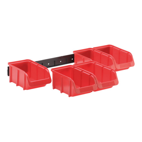 - Jeu contenant 5 bacs PP rouges, taille 1 et un rail en plastique