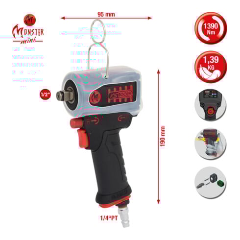 KS Tools Clé à chocs pneumatique 1/2" miniMONSTER haute performance 1.390 Nm avec pellicule de protection