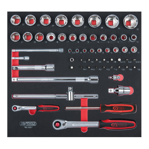 KS Tools SCS CHROMEplus 1/4"+1/2" Module de douilles, 57 pcs., modules système 1/1