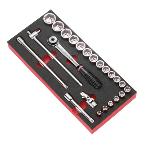 Module Facom Foam - Série d'éléments d'entraînement 1/2 pouce, clé à douille, cliquet réversible 23 pcs