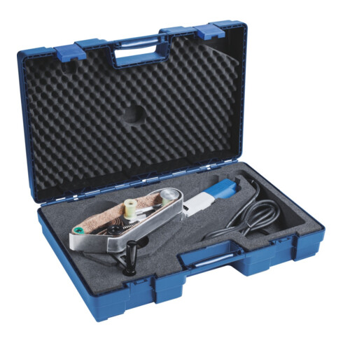 Ponceuse à bande spéciale tube dans une mallette de transport.
