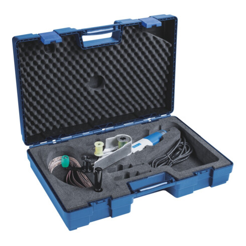Ponceuse à bande spéciale tube dans une mallette de transport.