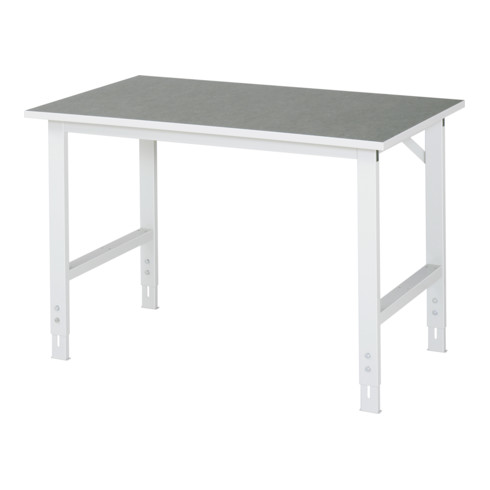 Rau Table de travail Tom, hauteur réglable manuellement en continu entre 760 et 1080 mm, plan de travail en linoléum