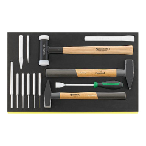 Marteaux, burins etc. en plateau TCS 530 x 350 x 40 mm, 13 pièces