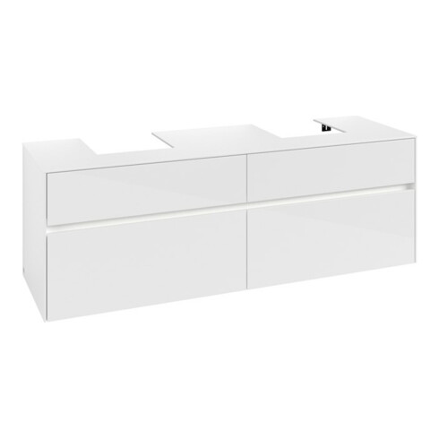 TTCV&B Collaro Meuble sous lavabo 160x54,8x50cm, 2 tiroirs, LED 12W, blanc brillant
