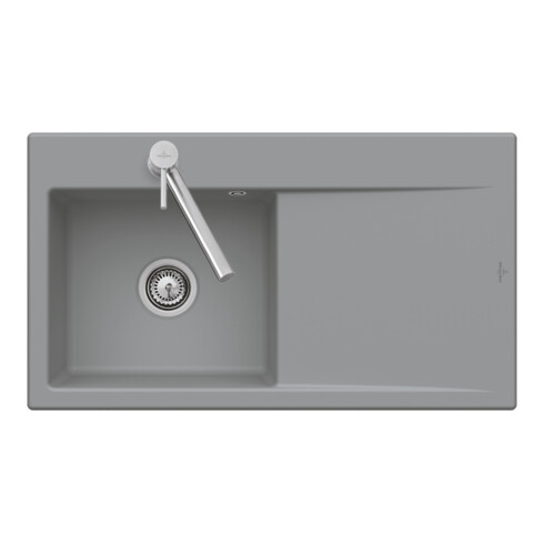 TTCV&B Évier affleurant Subway Style 50 Flat gauche, avec garniture, excentrique, pure black