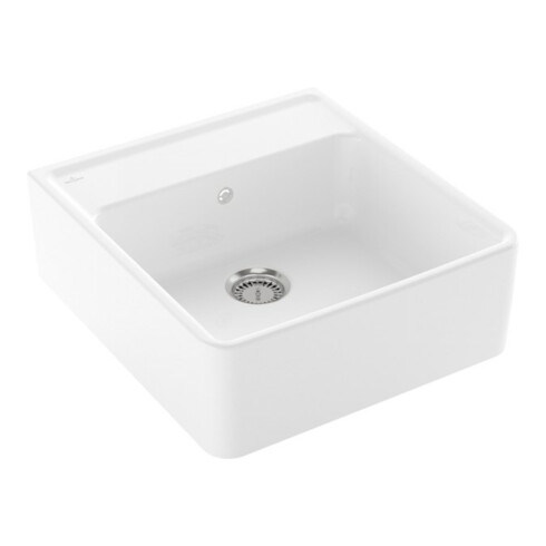 TTCV&B Évier simple avec garniture vidage, à main, blanc CeramicPlus