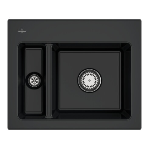TTCV&B Évier Subway 60 XM avec garniture, commande manuelle, noir pur