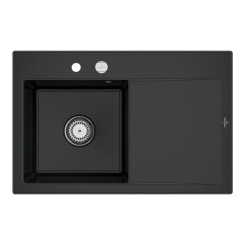 TTCV&B Évier Subway Style 45 gauche, avec garniture vidage, excentrique, noir pur