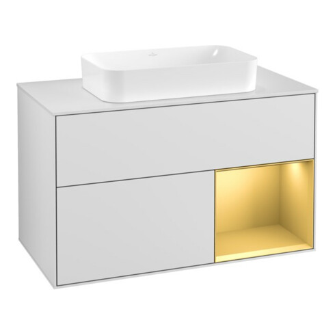 TTCV&B Finion 100 Meuble sous lavabo avec éclairage mural, blanc, droite, or, laqué blanc