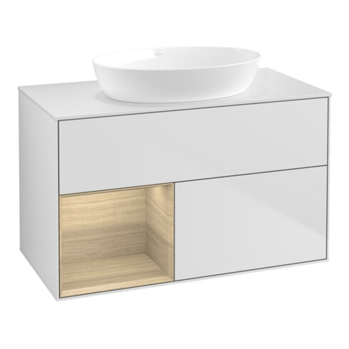 TTCV&B Finion 100 Meuble sous lavabo avec éclairage mural, blanc mat, avec étagère, blanc mat laqué