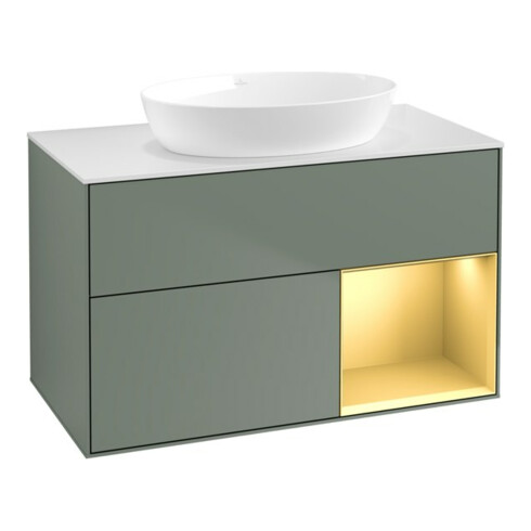 TTCV&B Finion 100 Meuble sous lavabo avec éclairage mural, blanc mat, poignée or mat laqué, huile mat laqué