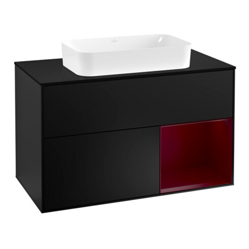 TTCV&B Finion 100 Meuble sous-lavabo avec éclairage mural, bleu mat, porte droite, bleu mat laqué