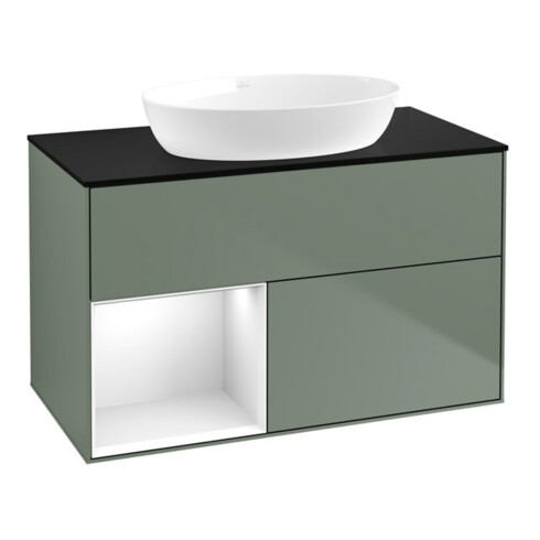 TTCV&B Finion 100 Meuble sous lavabo Éclairage mural, blanc brillant, laqué huilé