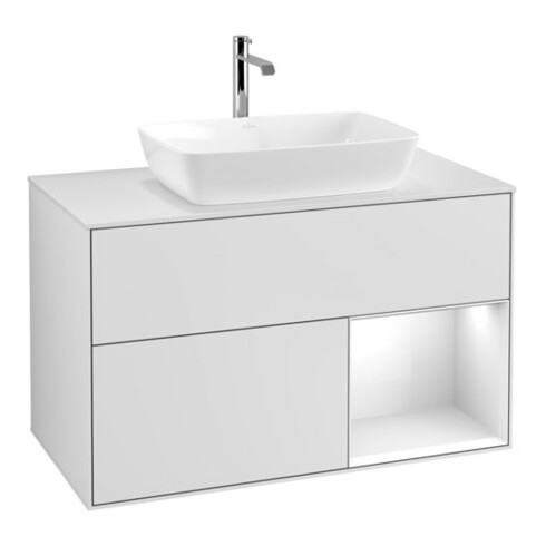 TTCV&B Finion 100 Meuble sous lavabo Éclairage mural Blanc laqué, brillant blanc laqué