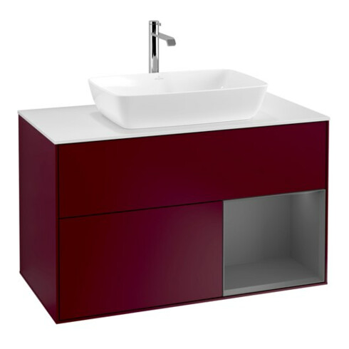 TTCV&B Finion 100 Meuble sous lavabo, éclairage mural, blanc mat, étagère anthracite mat laqué, poignée métal