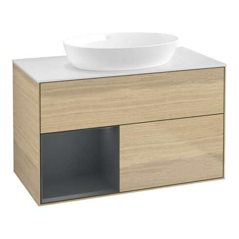 TTCV&B Finion 100 Meuble sous lavabo, éclairage mural, blanc mat, rangement médium mat laqué, poignée ven