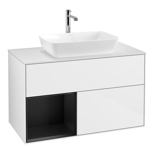 TTCV&B Finion 100 Meuble sous lavabo Éclairage mural, blanc mat, régulateur bleu mat, laqué brillant blanc