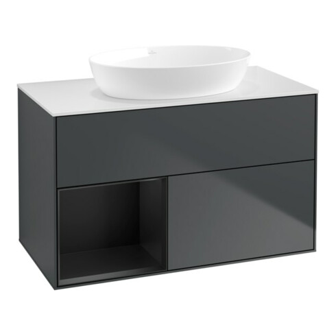 TTCV&B Finion 100 Meuble sous lavabo Éclairage mural Blanc mat, Régulier bleu mat laqué, moyen bleu mat laqué