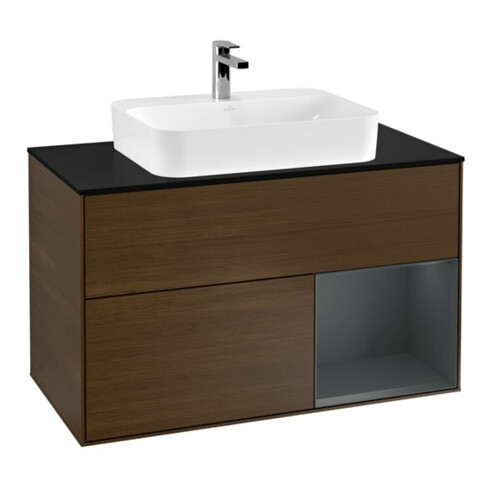 TTCV&B Finion 100 Meuble sous lavabo Éclairage mural, placage bois, laqué, noyer veiné