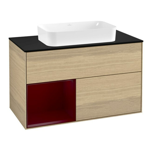 TTCV&B Finion 100 Meuble sous-lavabo Éclairage mural, plaque de vidage bleue, réglette gauche Peo, Oa ven