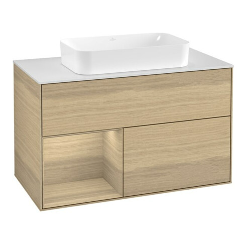 TTCV&B Finion 100 Meuble sous lavabo mural, pl blanc, rég gauche Oa ven, Oa ven