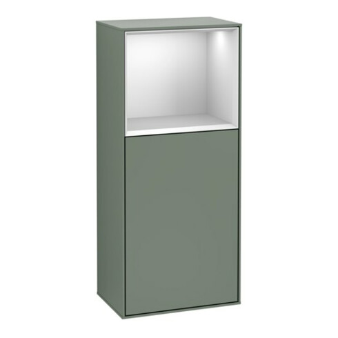 TTCV&B Finion Armoire latérale Éclairage mural 41,8x93,6cm, droite, étagère sup. blanche, olivier laqué