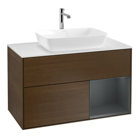 TTCV&B Finion Meuble sous lavabo 100 cm, blanc mat, tiroir moyen laqué, noyer veinée