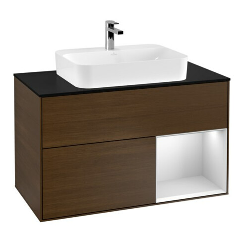TTCV&B Finion Meuble sous lavabo 100 cm, bleu, étagère droite blanche, laqué, veinage bois