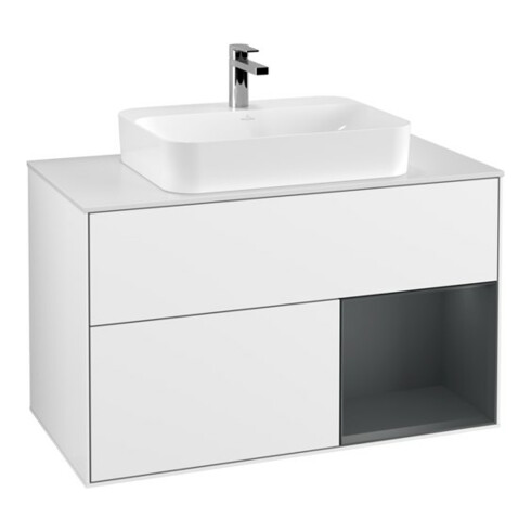 TTCV&B Finion Meuble sous lavabo 100 cm, éclairage mural, blanc brillant