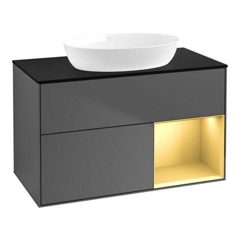 TTCV&B Finion Meuble sous lavabo 100 cm, placage bleu, étagère laiton, anthracite