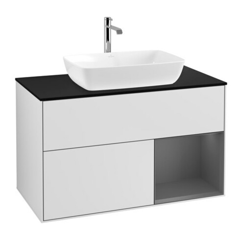 TTCV&B Finion Meuble sous lavabo 100 cm, placage bois, laqué blanc