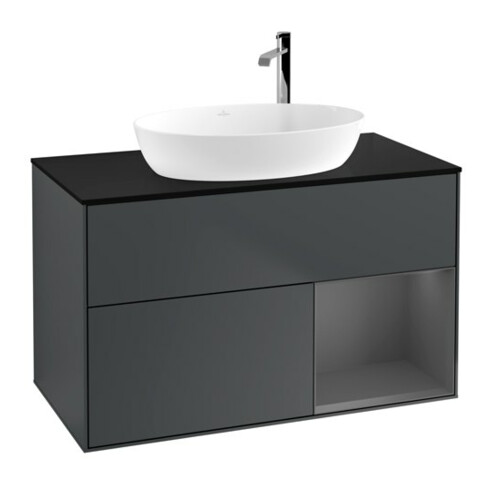 TTCV&B Finion Meuble sous lavabo 100, placage bois, laqué gris, avec plancher laqué bleu