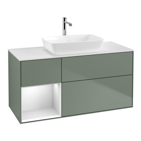 TTCV&B Finion Meuble sous lavabo 120 cm, blanc mat, tiroir blanc laqué, poignée métal laqué