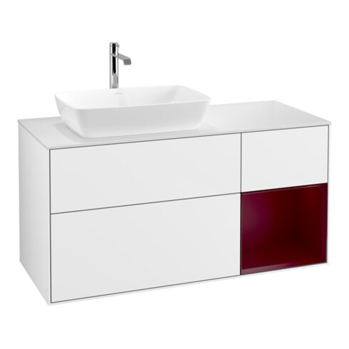 V&B Finion Meuble sous lavabo 120 cm, éclairage mural, blanc brillant