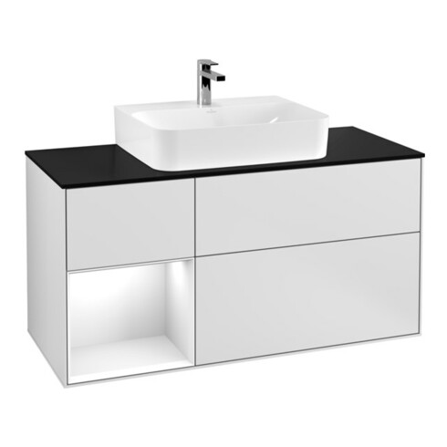 TTCV&B Finion Meuble sous lavabo 120 cm, éclairage mural, blanc laqué, blanc mat